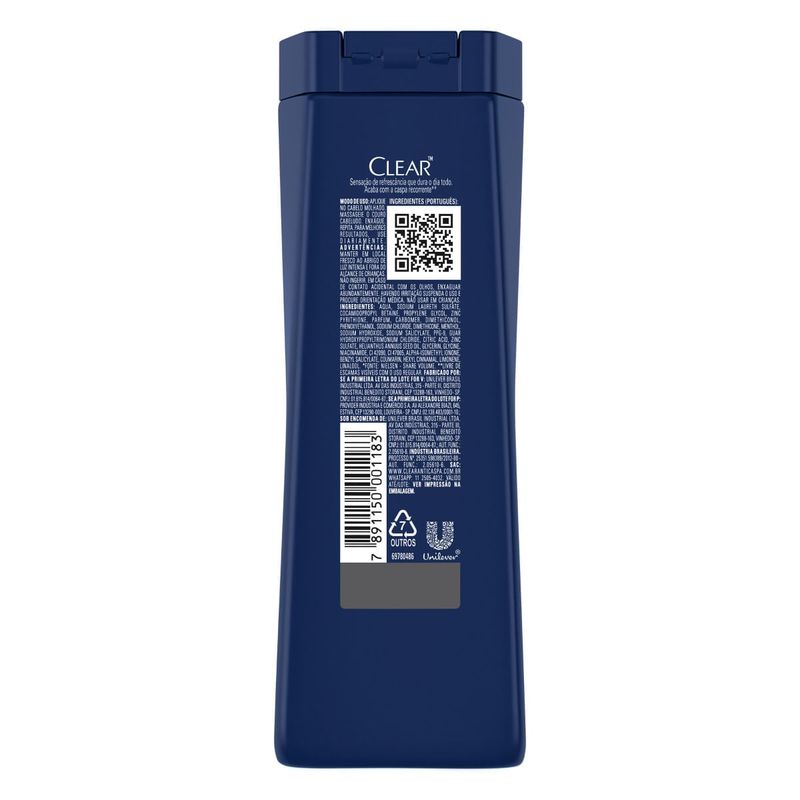 Shampoo Anticaspa Clear Men Ice Cool Menthol 400 ml