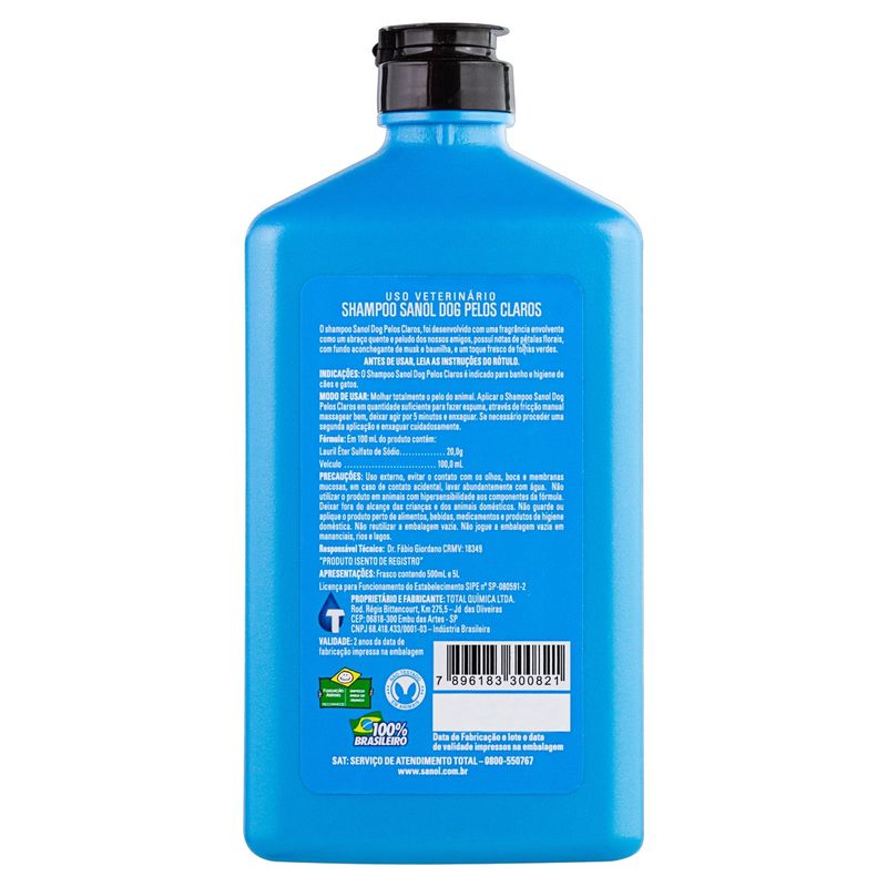 Shampoo SANOL DOG Pêlos Claros Frasco 500ml